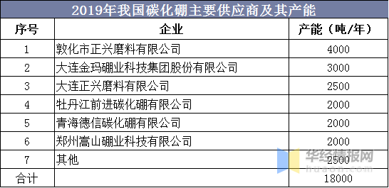 2019年我國碳化硼主要供應(yīng)商及其產(chǎn)能